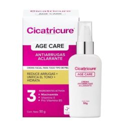 Cicatricure Age Care antiarrugas aclarante con niacinamida, reduce la profundidad de las primeras arrugas y unifica el tono de la piel. Ademas contiene filtros UV que ayudan a prevenir la formación temprana de nuevas arrugas. La piel queda hidratada y luminosa. Textura ligera y de rápida absorción.