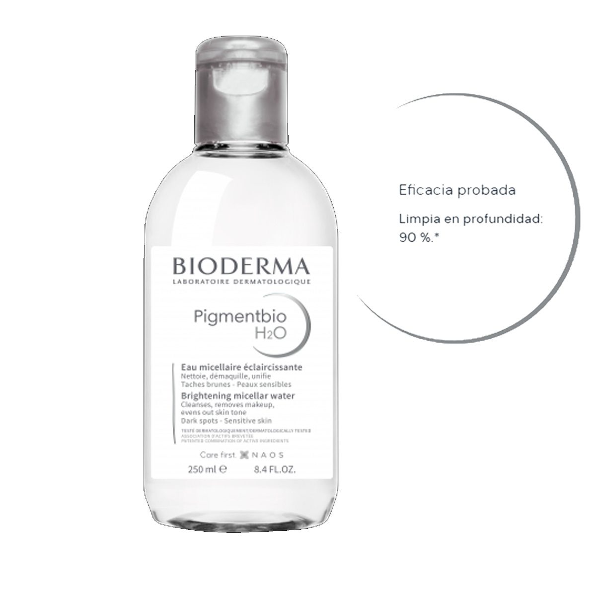 Pigmentbio agua micelar está especialmente formulada para las pieles con trastornos de la pigmentación, limpia con suavidad y desmaquilla el rostro y los ojos.