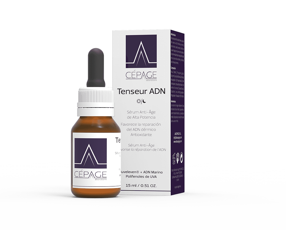 Tenseur AND contiene Juveleven®, un ingrediente innovador ideal para rejuvenecer las células y protegerlas de los efectos genotóxicos de agentes dañinos (exposición UV, contaminantes, etc.). Tenseur AND humecta, restaura y protege la superficio epidérmica