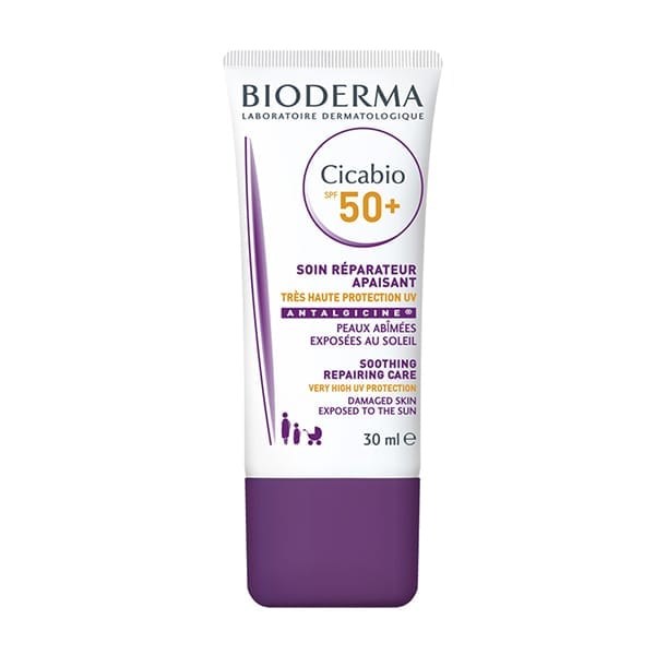 Cicabio SPF 50+ ayuda a reparar la piel debilitada y expuesta al sol actuando en cada fase del proceso biológico de reconstrucción de la epidermis y limitando el riesgo de hiperpigmentación posterior a la cicatrización (manchas marrones).