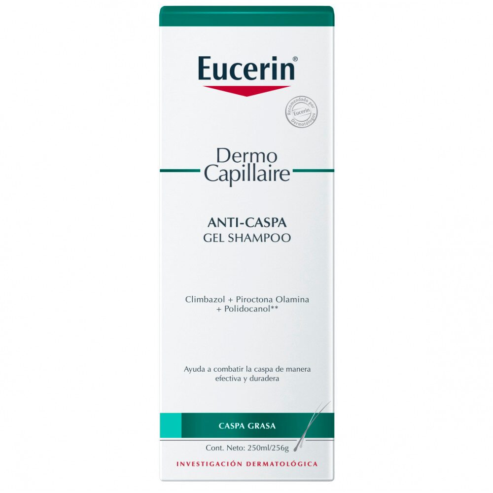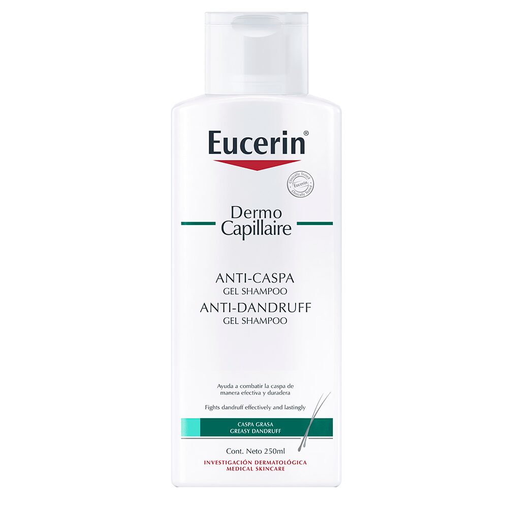 Eucerin DermoCapillaire Shampoo Gel Anticaspa está especialmente diseñado para la caspa grasa y la dermatitis seborreica. Limpia con suavidad el cuero cabelludo y el cabello de las escamas amarillentas pegajosas y reduce y controla la caspa efectivamente. Su fórmula suave calma el cuero cabelludo y reduce la picazón desde el primer lavado, mientras que los agentes acondicionadores especiales le dan al cabello brillo saludable y sensación de suavidad y elasticidad.