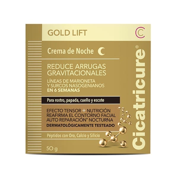 Cicatricure desarrolló la nueva línea Antiedad Gold Lift que combina el poder de los Péptidos de Oro, Calcio y Silicio impactando en la morfología de la piel, reduciendo la profundidad de las arrugas gravitacionales y redefiniendo el contorno facial.